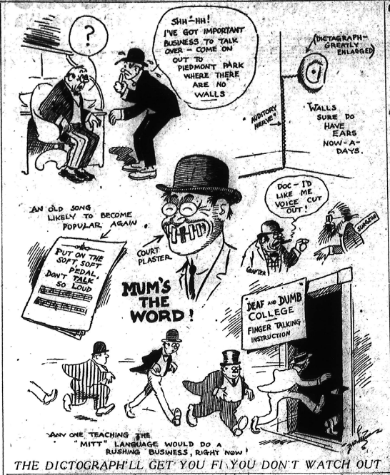 “This much I will say, though, and that is if the dictograph record purporting to show what was said is a fair sample of the dictograph, then it is one of the biggest fakes that ever came down the pike. I used to think it was fine thing in detecting criminals and such like, but I think now that it must be used by very honest, high-toned men or else it becomes an instrument of crookedness and blackamil [sic].